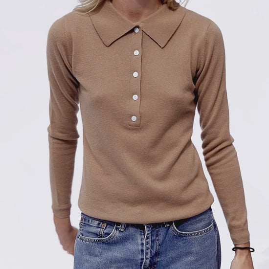 Taking cues from the intimate simplicity of vintage undergarments, the Cashmere Polo Shirt boasts a slim fit with a sustainable button-down front, redefining the meaning of luxury basics. Complete the look with the Linen Blazer and a pair of denim.