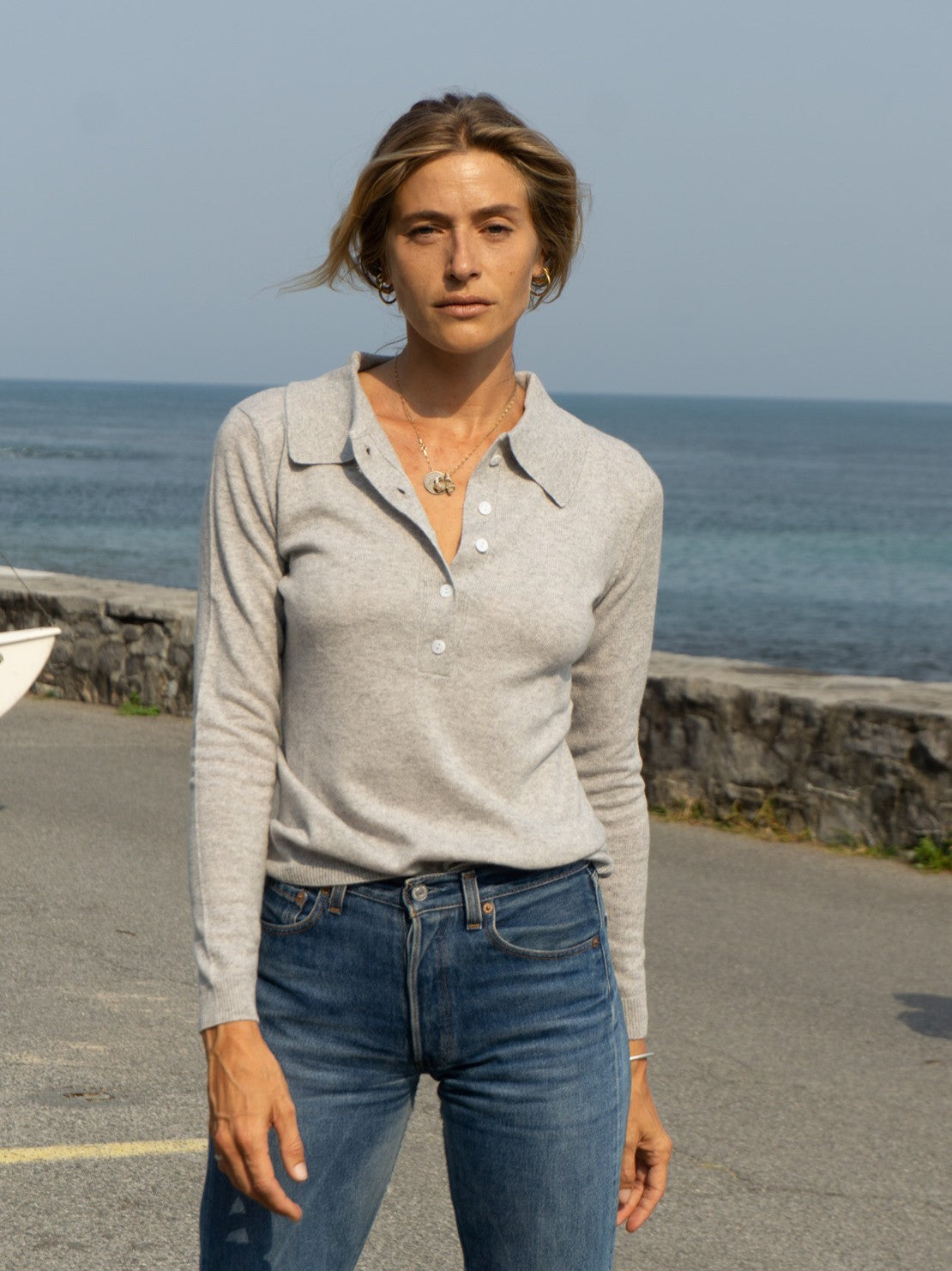 Taking cues from the intimate simplicity of vintage undergarments, the Cashmere Polo Shirt boasts a slim fit with a sustainable button-down front, redefining the meaning of luxury basics. Complete the look with the Linen Blazer and a pair of denim.